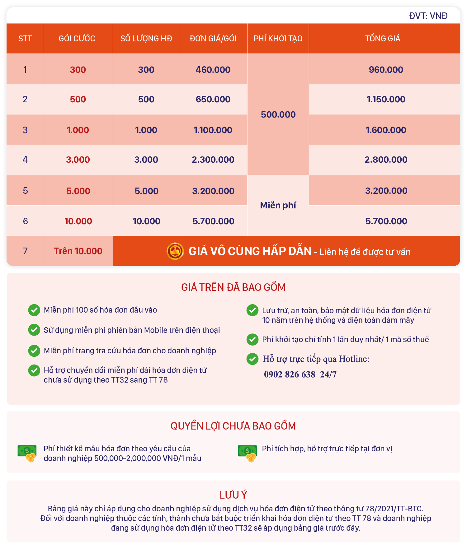 - Phí 10.000.000 số hóa đơn: 10.000.000